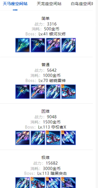 前期建议专注挑战天马座的困难与极难模式,优先刷取优质战机来助力过渡阶段