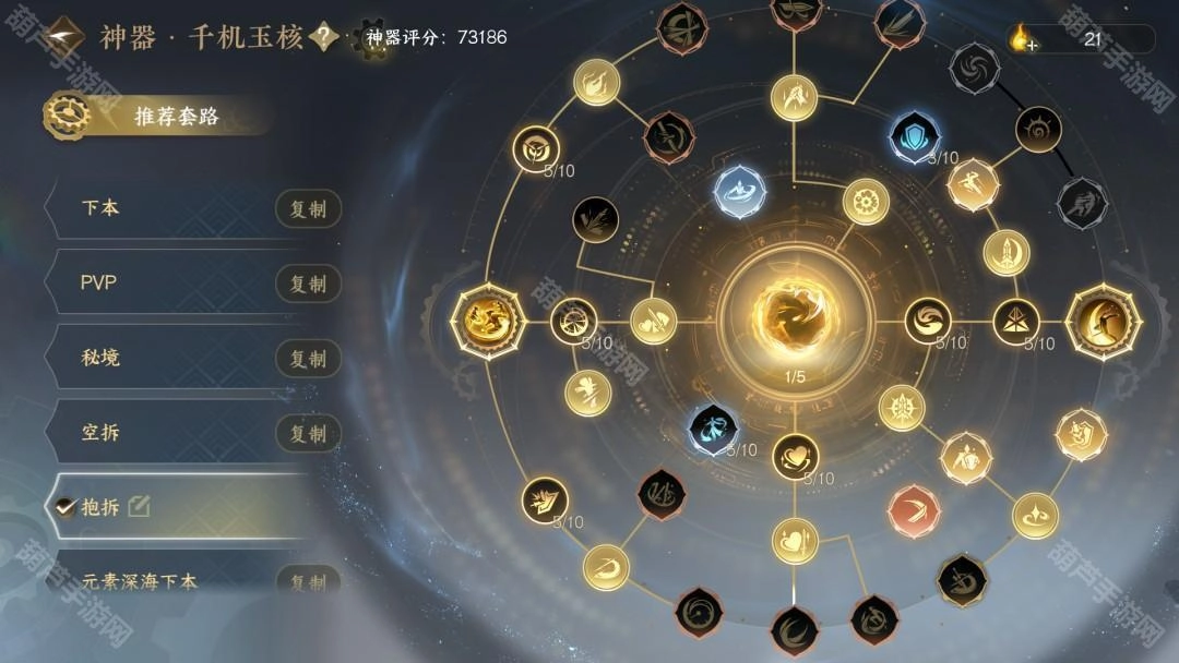这套搭配要求把忽视属性叠到最高,所以神器点或许会不足,只能放弃掉增加会心伤害的那些节点了。