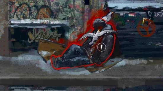 山姆在城市里挣扎求生,得去街角的垃圾桶翻找食物,在街区里寻觅临时工作,要么拦住路人乞讨,要么偷偷摸摸搞点东西,甚至还能从尸体上搜摸可用的物品。他靠着残羹剩饭填肚子,到公厕里洗漱,用烟酒和药物来麻痹自己,在糟糕的环境里艰难维持生计。