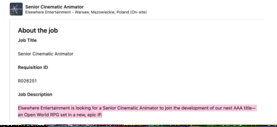 油管博主extas1s在视频里透露,他是从动视旗下新成立的Elsewhere Studio工作室的领英招聘信息中得知相关情况的。