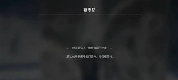 继续往前走,我们看到了一块巨大的墓碑,这块墓碑在《明日方舟》主线剧情的15-12关卡里曾经出现过。墓碑上的墓志铭对应的是普瑞赛斯(那个赛博女鬼还在追着我呢)。