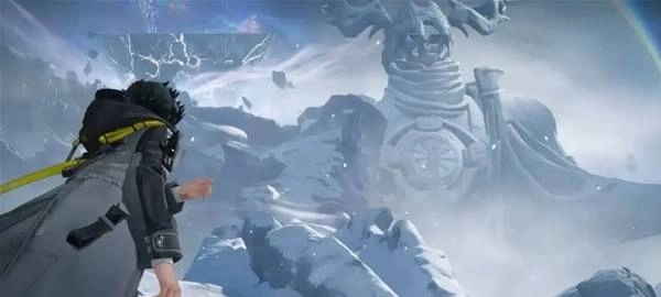 当我们继续前进时,会发现路面断了,不过这里正好有个雕像给我们搭路,而这个雕像正是《明日方舟》中的爱国者。