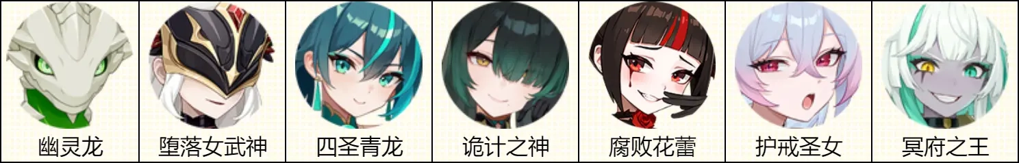 ◇ 输出位包含四圣青龙、诡计之神、腐败花蕾与冥府之王。