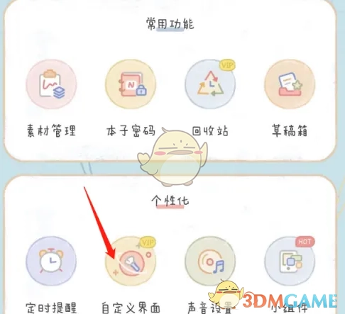 2. 点击进入「自定义界面」选项