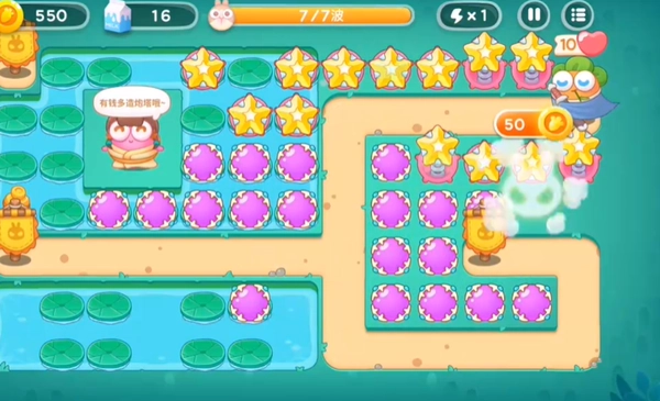 5、把池塘里的荷叶打掉,以此生成格子。到了后期,这些扩展格子对我们极为重要,它们能为我们提供更多放置炮塔的空间,进而提升我们的战斗力。