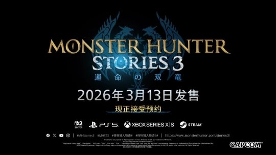 《怪物猎人物语3:命运双龙》计划于3月13日在PlayStation 5、Xbox Series、Switch 2和Steam平台上线。