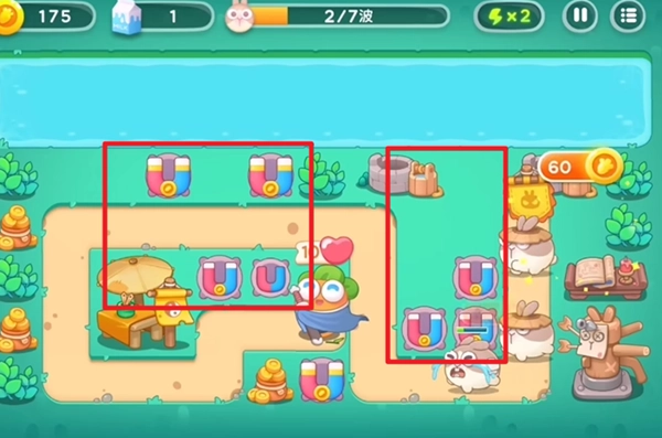1、在怪物即将现身之际,我们先按下暂停键。此刻,需在下方位置建造一座磁铁炮塔。这座磁铁炮塔作用重大,它能够拆除右侧的障碍物。不仅如此,磁铁炮塔上的磁铁部分还具备断后功能,在抵御怪物来袭时可发挥一定的防御作用。