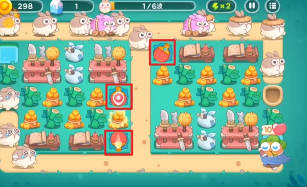 2、首先优先拆除右边的小道具,接着在拆除小道具后空出的格子上放置乒乓球拍,当伤害达到足够程度时,就能够集中火力拆除大道具了。