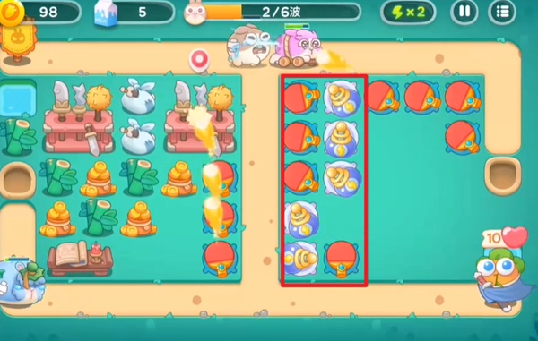 3、待右边区域清理完毕,便着手放置闪电输出炮塔,以增强火力。