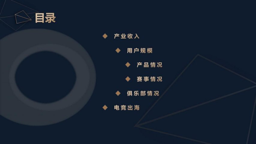 本次报告从产业收入、用户规模、产品情况、赛事情况、俱乐部情况、电竞出海六个方面全方位阐述中国电竞产业在2025年的总体情况。