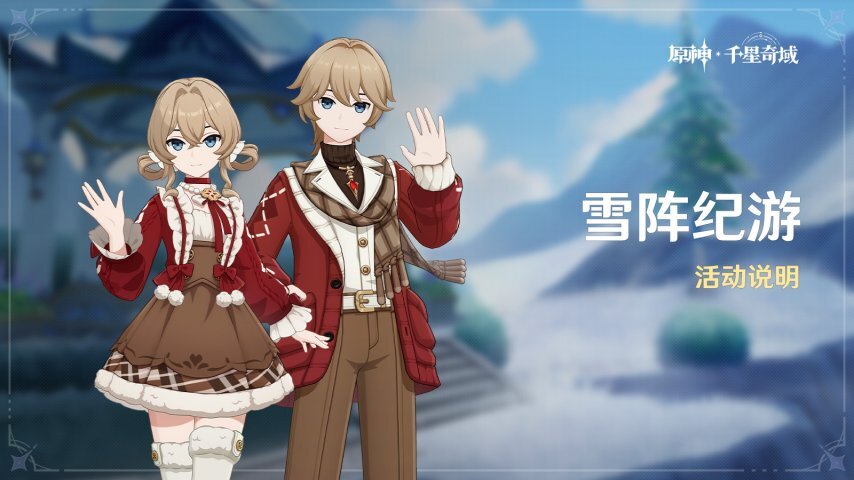 「雪阵纪游」活动开启,活动期间,旅行者可以在纪游中获得丰厚的奖励,解锁「诸界纪游」或「诸界史诗」更可获得限定(4星)装扮「新春序曲」!直接购买诸界史诗更可获得纪游专属大厅「静谧雪庭·皓白冬日」。