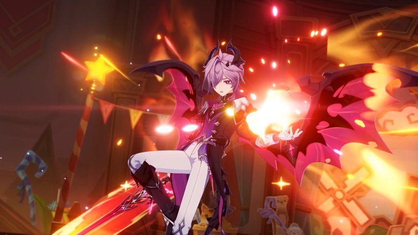杜林在战斗时会展现出两种截然不同的风格。当他释放元素战技后,点按普通攻击,便会进入「黑度之否」状态;处于该状态下释放元素爆发,不仅能提高自身触发的蒸发与融化反应伤害,还会间歇性地对周围一名敌人造成火元素伤害。