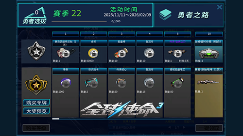 真正的勇士,唯有历经千锤百炼方能成长蜕变。勇者选拔精心设计了一套等级体系,玩家既能通过完成各类任务,也能消耗点券来提升等级,从而领取对应等级的专属奖励。该系统分为普通版和通行证版两个版本,其中通行证版需要玩家花费5800点券购买令牌才能开启。简单而言,勇者选拔可视为《全球使命3》面向游戏会员推出的一项特别活动,目的是留住玩家并激发大家的游戏热情。无论是免费玩家,还是购买进阶版的玩家,都能根据自身勇者等级的提升获取相应奖励,不过奖励内容和道具品质会因版本不同而有所区别。