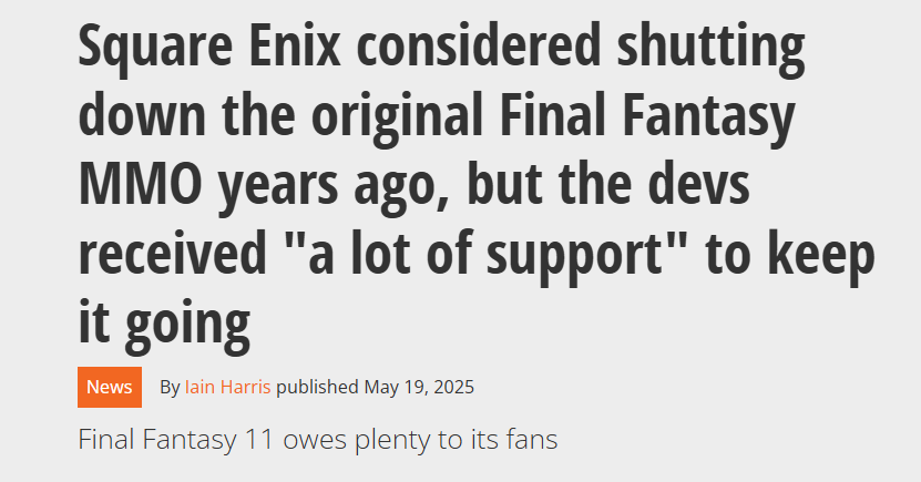 今年五月,制作人兼总监藤户洋二在一次采访中曾透露:最初的计划是在《贪婪的复兴》剧情于2024年完结后,就让这款游戏画上句号。另外,考虑到这款MMO游戏的服务器即将达到使用年限,他们也一度有过彻底关闭《最终幻想11》的想法。不过最终,因为玩家们的鼎力支持以及游戏玩家数量的大幅增长,这样的结局才没有成真。