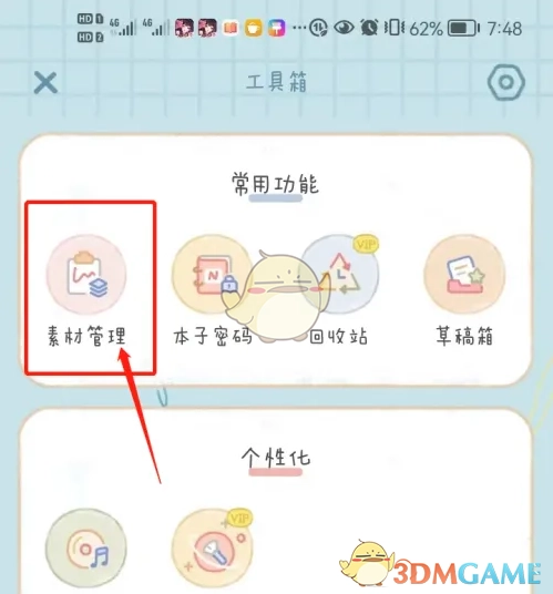 2. 点击工具栏里的【素材管理】菜单。