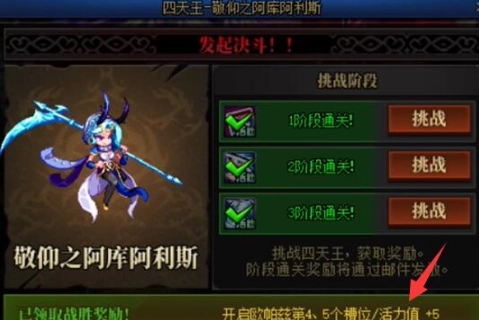 只要成功应对四大天王的三次挑战并取得胜利,就能获取额外的活力奖励。