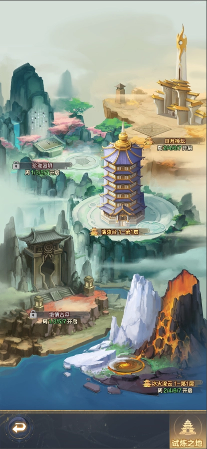 它们分别为:演阵台、日月神坛、珍珑困境、绝情古墓、冰火流云。