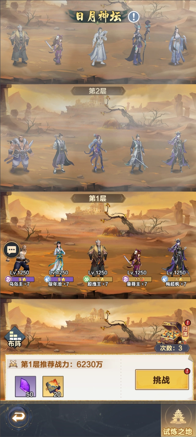 3. 除演阵台外,其他副本(统称为阵营试炼之地)均会对上阵侠客有所限制。