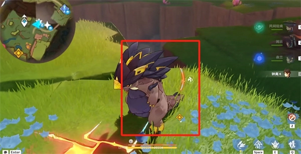 3、站在悬崖边缘纵身而下,此时能够瞧见下方地面左边有个长方形的坑,右边则有一条小龙。