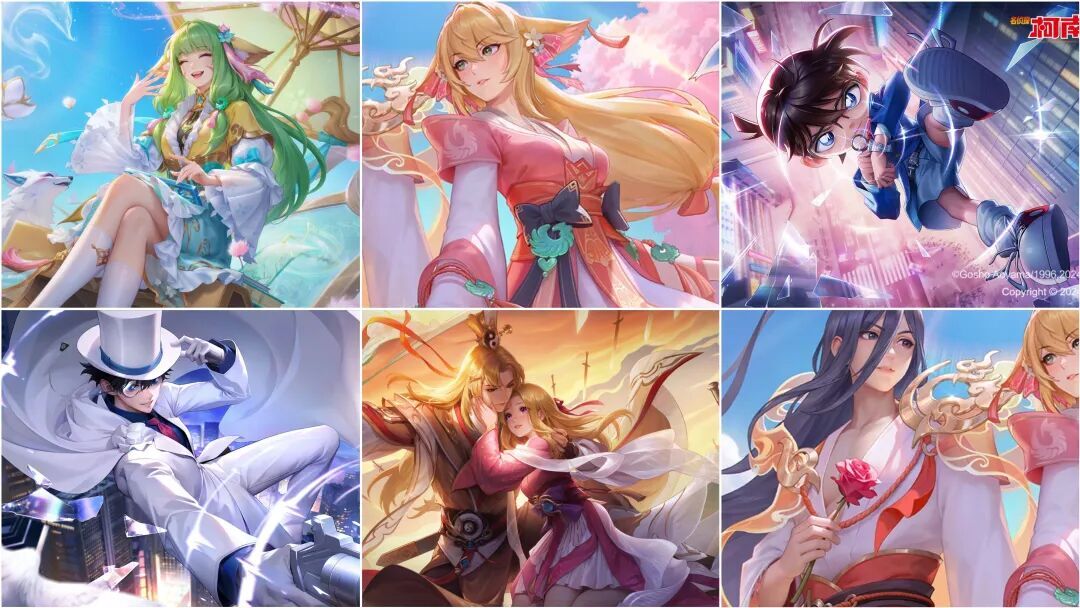 当然啦,大家熟悉的柯南联动皮肤、狐妖小红娘系列也在其中,这些都是2024年推出的合作款,至今热度依旧不低。特别是狐妖小红娘,今年还会有全新皮肤和大家见面呢。