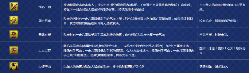 我们先来看第一张图,这张图很可能涵盖了部分攻击型宝宝所追求的特殊技能。惊心一剑作为消耗魔法的攻击技能之一,同样备受关注。不过最受瞩目的还是能造成双倍伤害的善恶有报,以及在服战和帮战中必备的带有殒命监禁特效的殒命召唤,还有专门针对高防御目标的壁垒击破和高伤害的力劈华山!至于夜舞倾城,就相对比较单一了!