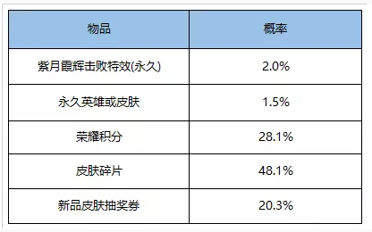 紫月霞辉礼包概率详情如下:
