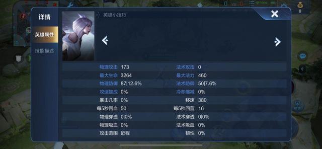 1级裸属性173攻击,87物防,算作十分尺度的刺客属性了;开始移动速度略低,走打野位大概会稍稍吃点亏。