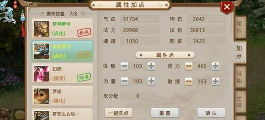 其次,问道手游宠物可分为血宠、法宠、力宠、敏宠几大类,具体加点可以参考下面。