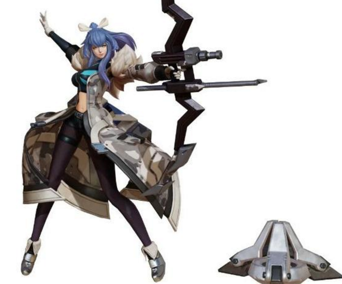 第一套星元名为娴静之息,人设定位为教官。造型上采用迷彩风衣,整体色彩以灰白蓝为主调,传递出意气风发的气质。最具亮点的是蓝紫渐变的发色,尽显青春活力。内搭选择紧身露腰运动内衣,搭配黑色紧身打底裤,既展现伽罗的身材优势,又融合了时尚与运动风格。