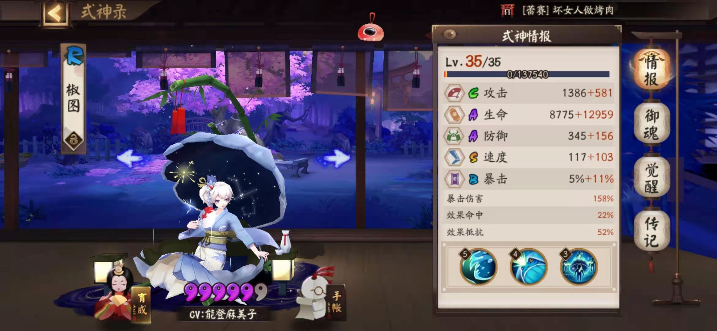 日和坊:御魂带树妖,属性选择生生暴,有条件的小伙伴可以带爆伤。