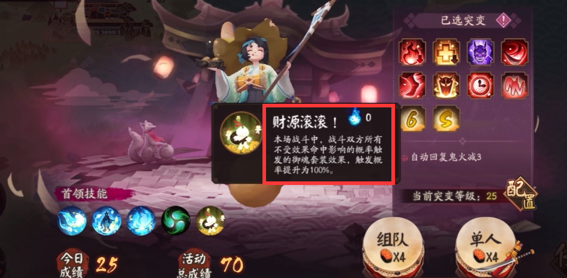 这次的铁鼠BOSS自带一个叫“财源滚滚”的特效,具体效果是“原本有几率触发的御魂,触发几率会变成100%”。换成我们平时常用的御魂来理解,就是针女、招财和轮入道这些御魂能100%触发了。