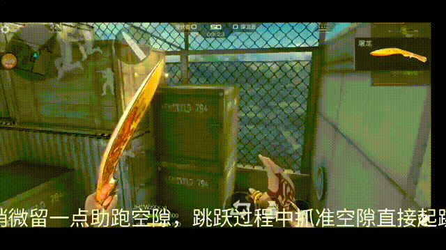 图11:重点来了,跳上堆叠箱这里的最高箱子后,贴墙行走。