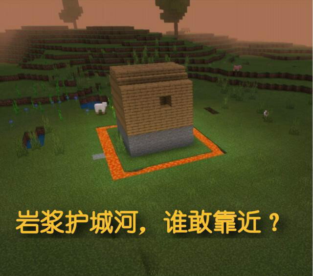 第5种方法是建造岩浆护城河。由于岩浆能对多数生物造成巨大伤害,所以我们可以在房屋周边用岩浆修筑这样一条护城河,它也能充当一个陷阱。有了它,还有谁敢靠近呢?野怪们都会远远躲开。你会尝试这样做吗?