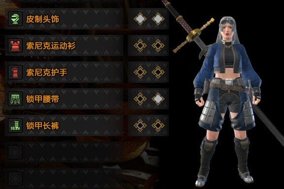 七、潮流舞者套装:包含皮制透视装、索尼克运动衫、索尼克护手、锁甲腰带与锁甲长裤。称其为“舞者”,是因为这套搭配极具现代感,还带着几分运动风格。
