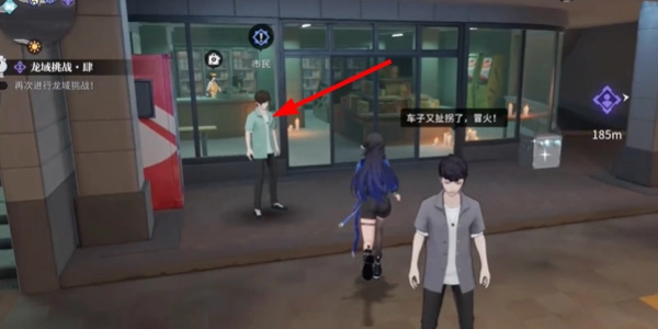 1. 首先抵达车站的传送点,于商店门口寻找到npc市民。