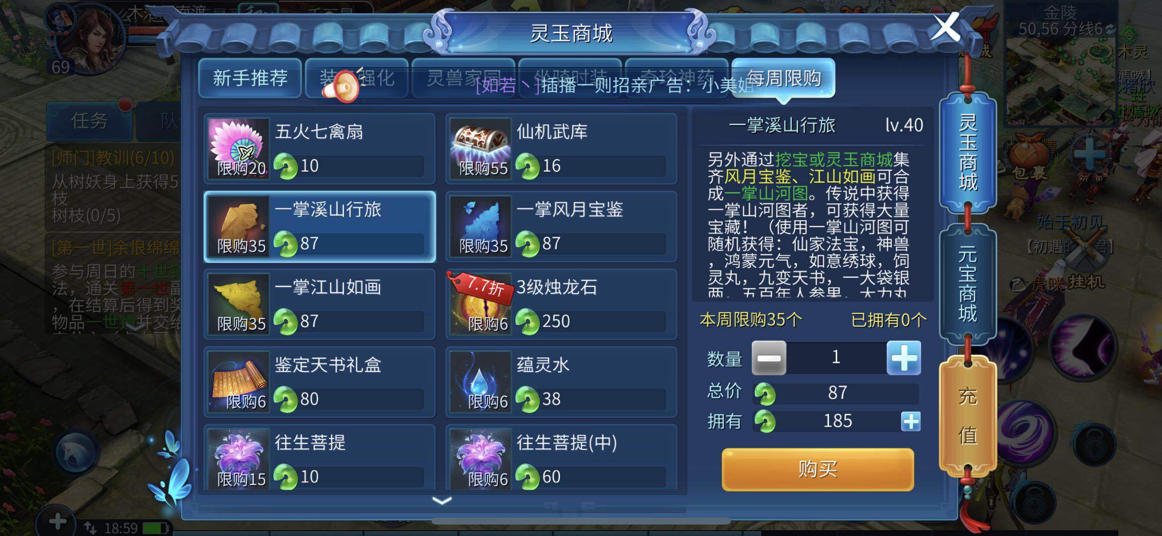 在我了解的各类挖宝玩法里,这绝对是奖励最给力的一档——能挖出绣球、鸿蒙元气这类能兑换神宠和海量银两的硬通货道具。不过要参与得先搞到一掌山河图,这道具的获取成本不低:得买三张残片,而且只能在商城用八十多灵玉买齐,合成后才能拿到完整的山河图。用了之后会随机传送进一个专属挖宝场地,里面散布着不少宝箱,点选其中一个角色就会自动寻路过去开挖。虽说挖一次差不多要花近三十块,但从大部分产出的道具价值来看,基本都能值回票价!