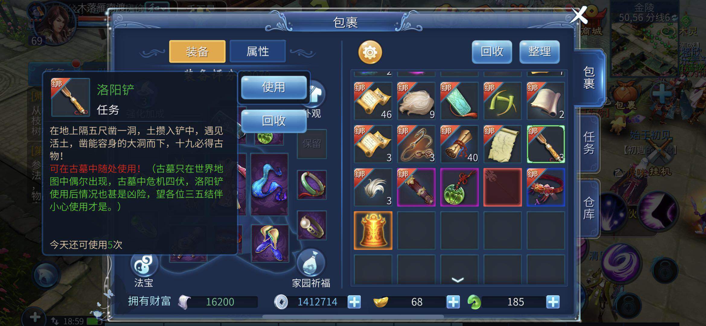 玩家在使用洛阳铲挖宝前,建议组上两三位好友一同前往。毕竟挖宝需要进入古墓,那里十分危险——不仅待在里面会持续掉血,挖宝过程中还可能挖出怪物。场景扣血加上怪物攻击的双重威胁,单人玩家很容易直接殒命,组队前往会更稳妥。此外,洛阳铲还能挖出宠物元神这类稀缺物资。