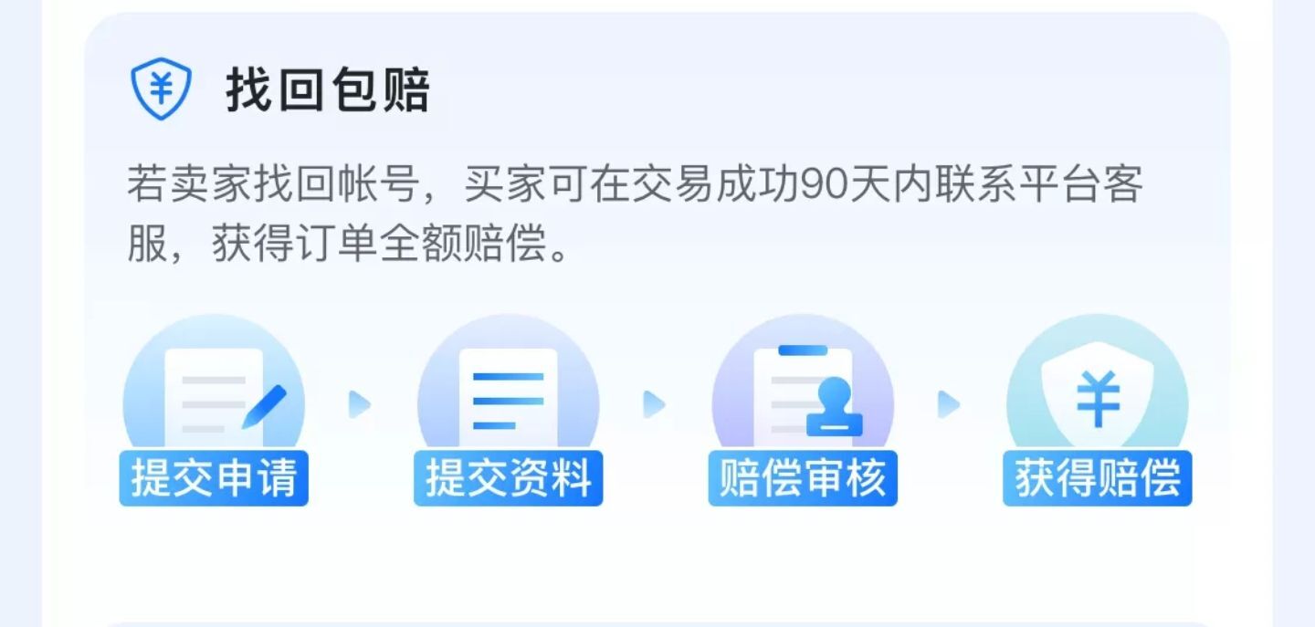 很多卖家为了更加快速的卖出账号,可以选择发布账号信息的时候添加上找回必赔选项,因此玩家们如果担心买完账号被找回的情况,可以专门挑选有这类保障的账号购买。
