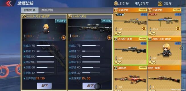 和初始版AWM比起来,曼陀罗无论是数值表现,还是载弹量、切换速度,都可以说是全面胜出。不过要是和英雄级的AWM天龙对比,曼陀罗在数值方面就没什么显著优势了。