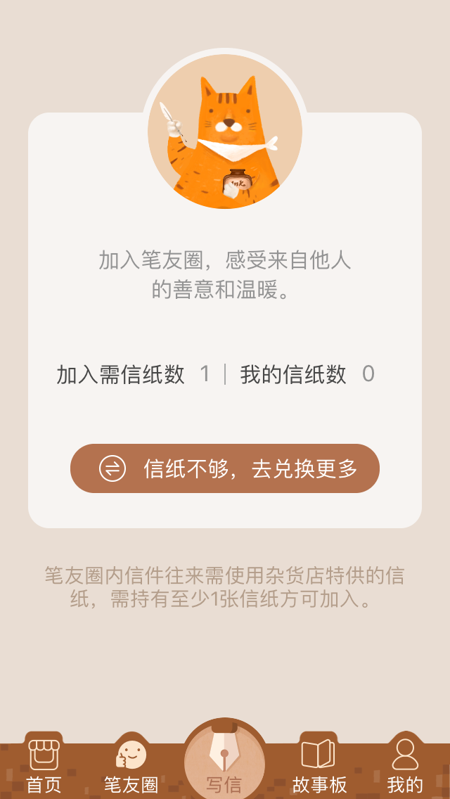 想要加入笔友圈的话,需要一张信封才行,每天签到能领取积分。这些积分可以用来兑换信封,信封数量满了就会关闭通道,想投递的小伙伴得早点提交哦。