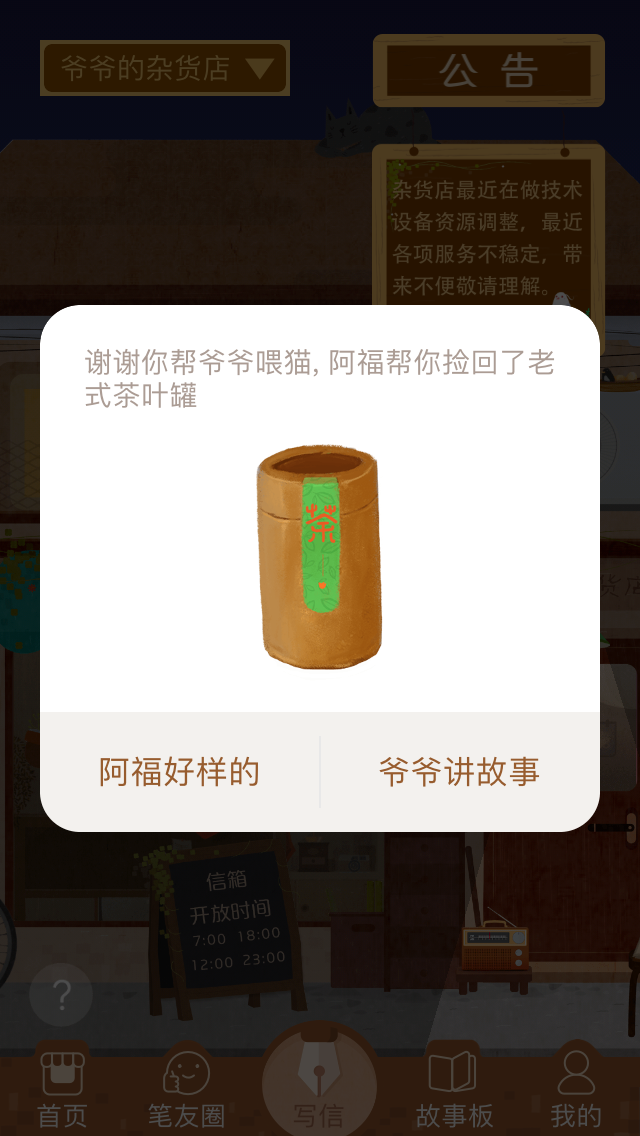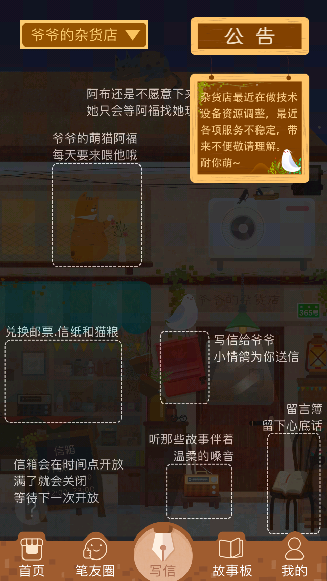 在故事板里,我们能读到爷爷或是工作人员寄来的信,信里会提及杂货店近况之类的内容;还能看到其他人分享的故事,这些故事有的满含温情,有的令人动容……我们可以给这些故事留言,和故事的主人公互动交流。当然,我们也能写下自己的故事并发布出去,让更多人看见。