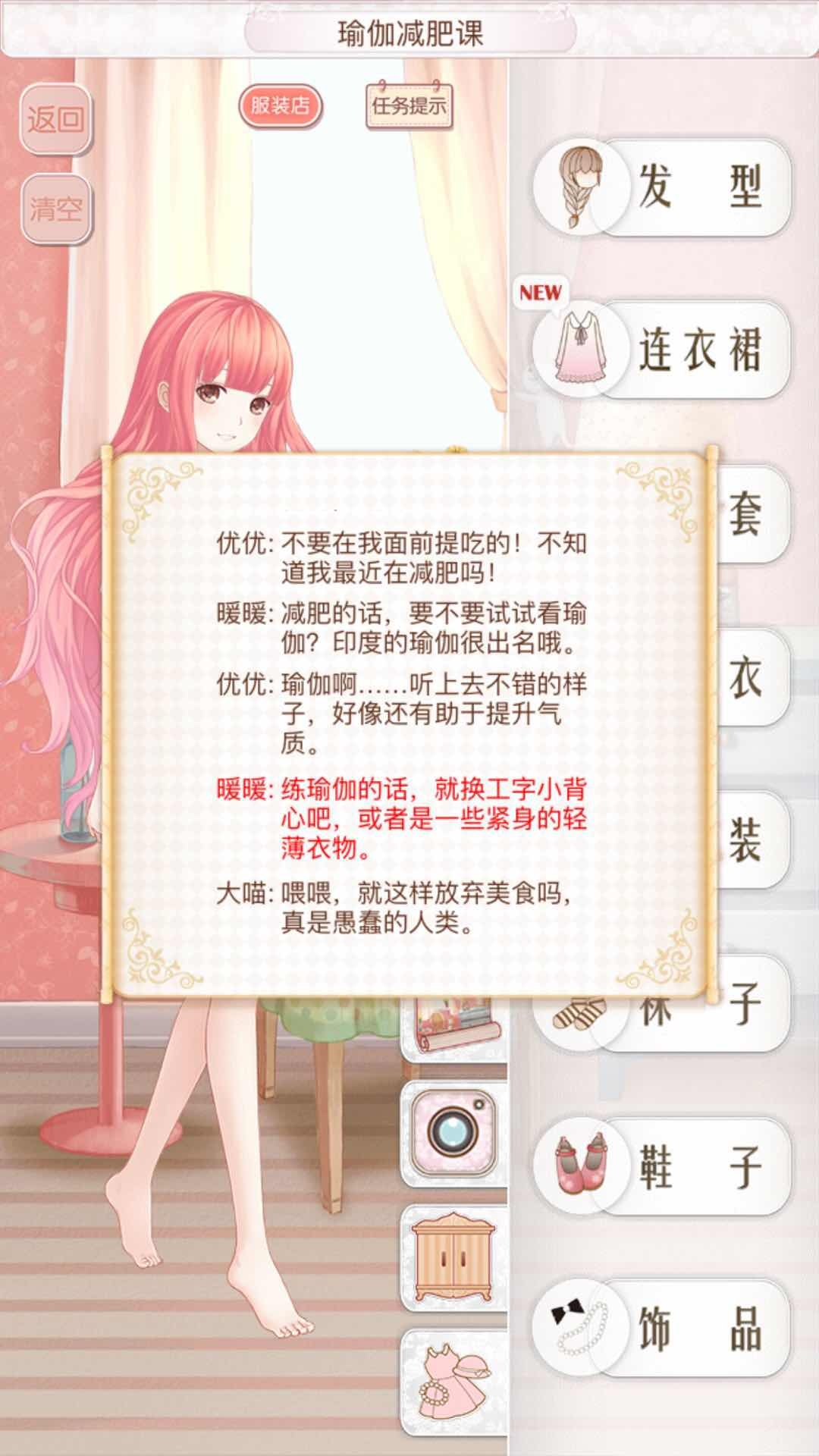可以看到这一关的任务是练习瑜伽,大家要留意下方图片中的红色文字提示——“换工字小背心或者一些紧身的轻薄衣物”。这正是本关的关键穿搭指引,接下来我们只需按照这个提示来搭配服装就行。一定要记住紧扣这个核心要求,要是偏离了可就拿不到S评分了哦!!!