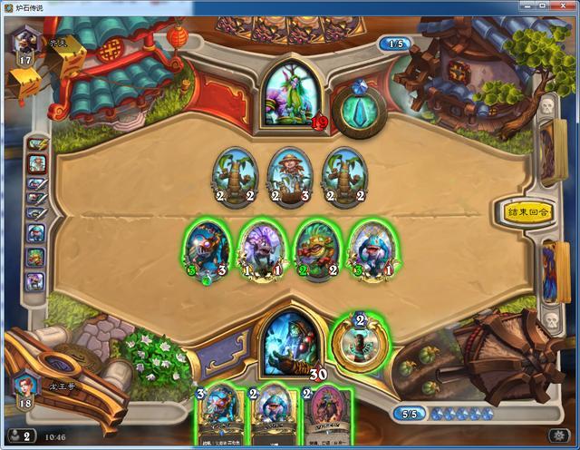 在这个过程中,活动里可用的曜石数量有限制,而且限制还挺大的,地窖鱼人就能利用这四个回合,进行一波铺场打脸的操作。我当时就是这么做的,前四个回合德鲁伊最多也就用个单解卡,所以我当时的优势还是很明显的。
