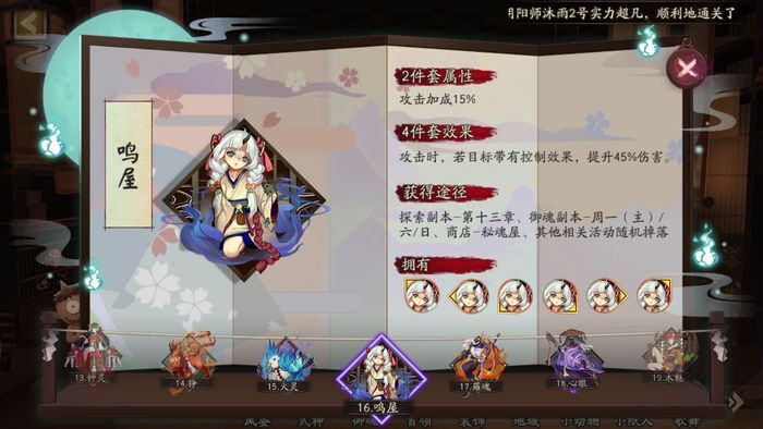 这套搭配在斗技里也挺强势的:首先靠抵抗控制效果来触发反击,御魂属性选攻抗爆伤就行——对面一旦给我们上debuff,就能反击并触发普攻的弹射被动;要是不控我们,我们也能通过普攻挂debuff,逼得对面只能强杀。这里配个入内雀就能完美反制,大家斗技碰到对面有帝释天这类式神时,不妨试试这套。