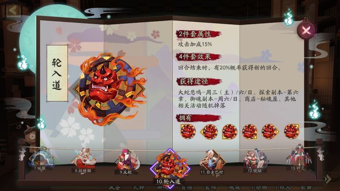 这套更适配不知火体系,触发轮入道后能普攻4次,伤害会大幅提升,还能增加被动层数。轮入道的搭配也很简单,毕竟2、4号位的攻击加成容易获取,当然爆伤还是越高越好。