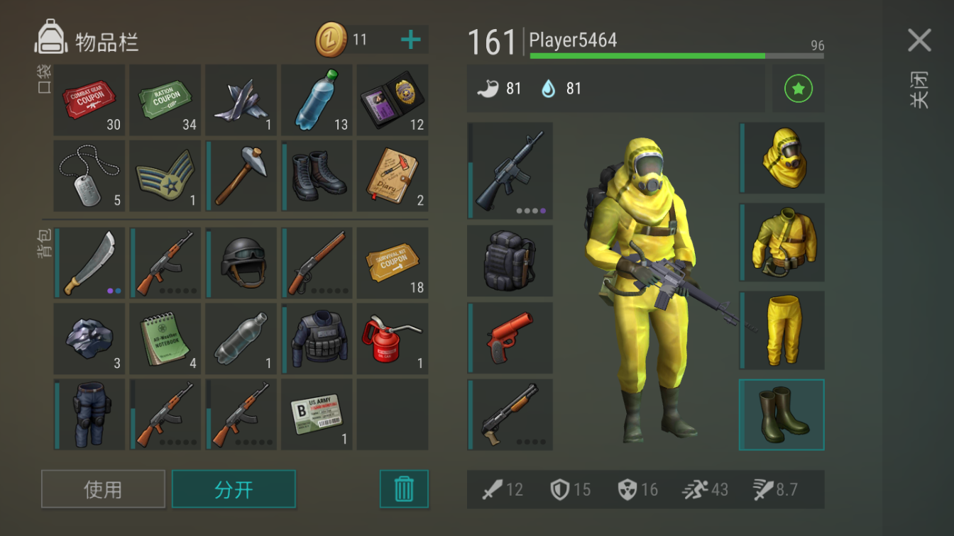 (3)身上带上防弹衣之类的防御装备先不要使用,先把防护服穿上,武器要选择自己目前最好的。