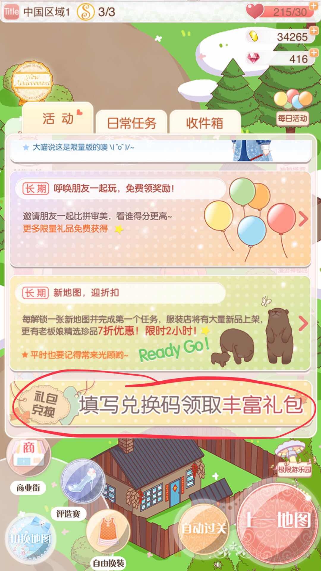 在活动板块滑动到最底部,会看到一个兑换码填写入口,关注官方微信即可获取兑换码,对应的礼包中还包含一件衣服。