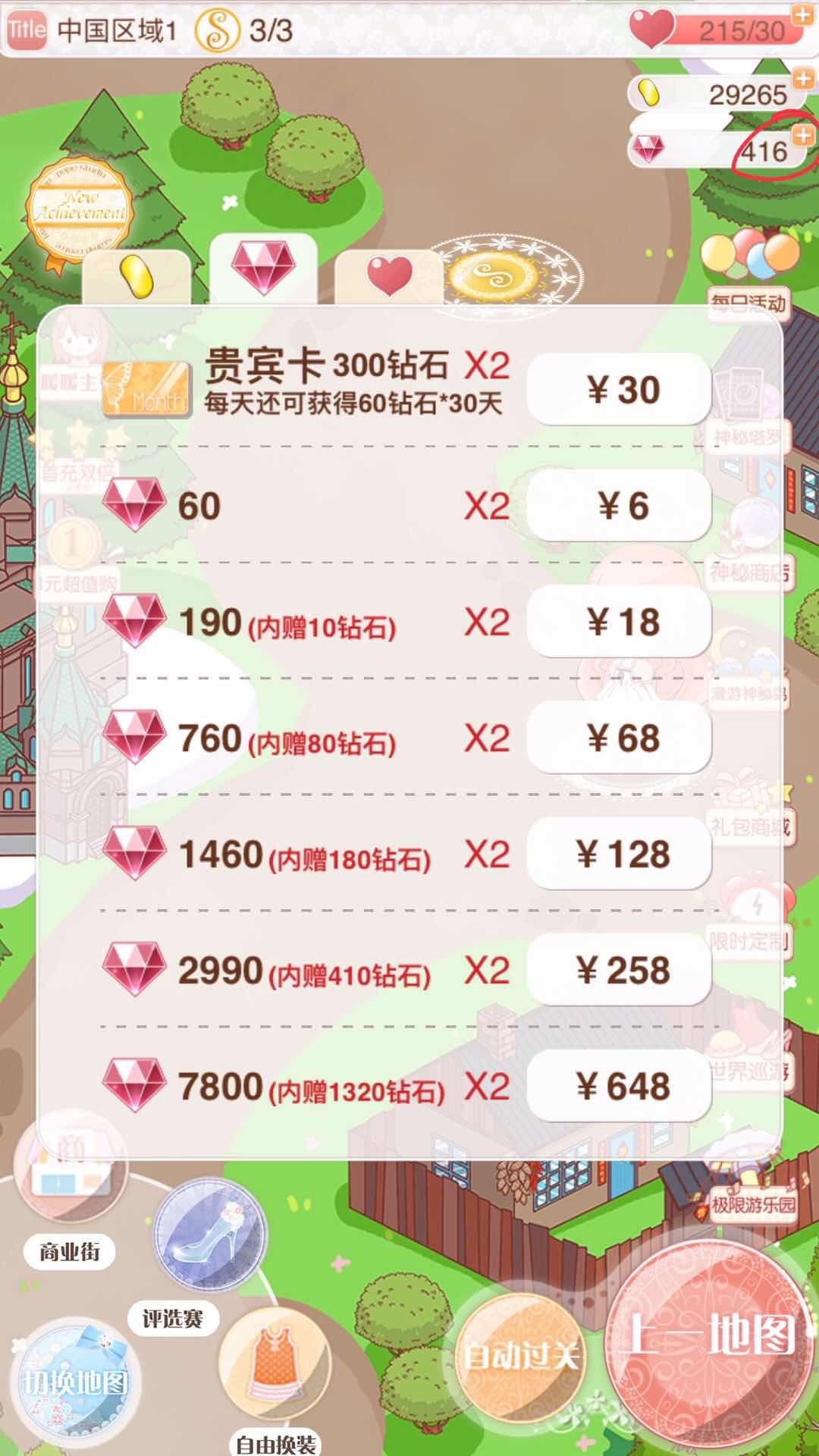 要是金币不够的话,既可以直接用钻石购买,也能先把钻石换成金币再去买东西。点击右上角钻石旁边的“+”号,就能开启充值消费的流程了。