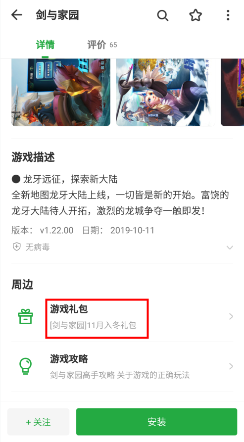 在豌豆荚里完成剑与家园下载安装的玩家,可点击进入游戏详情页面,在该页面的周边板块中找到游戏礼包入口。点击进入游戏礼包界面后,就能查看各礼包的具体内容以及对应的领取截止时间。