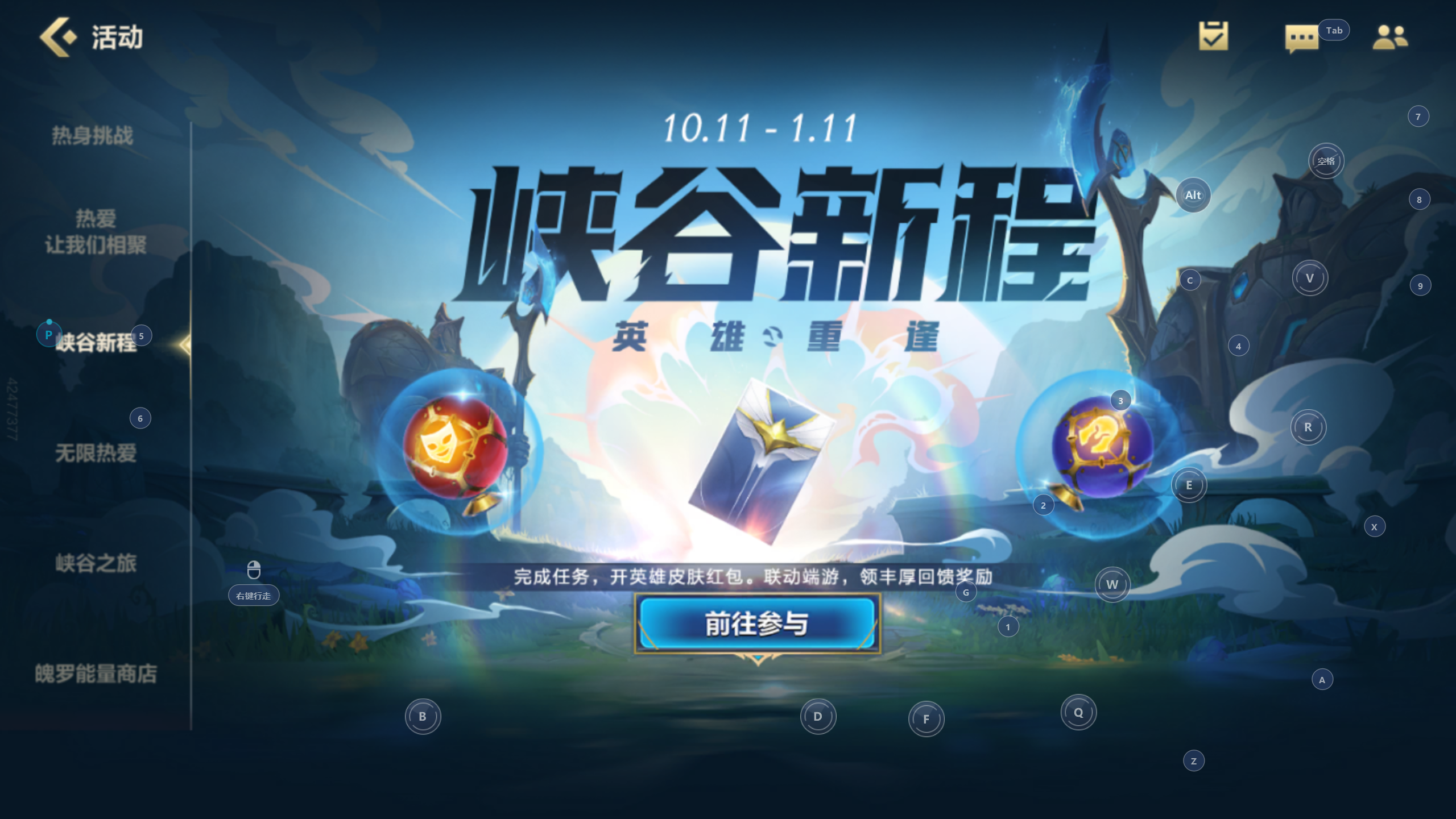 2. 界面跳转后向下滑动,找到【峡谷新程】活动的入口界面,点击“前往参与”进入活动;